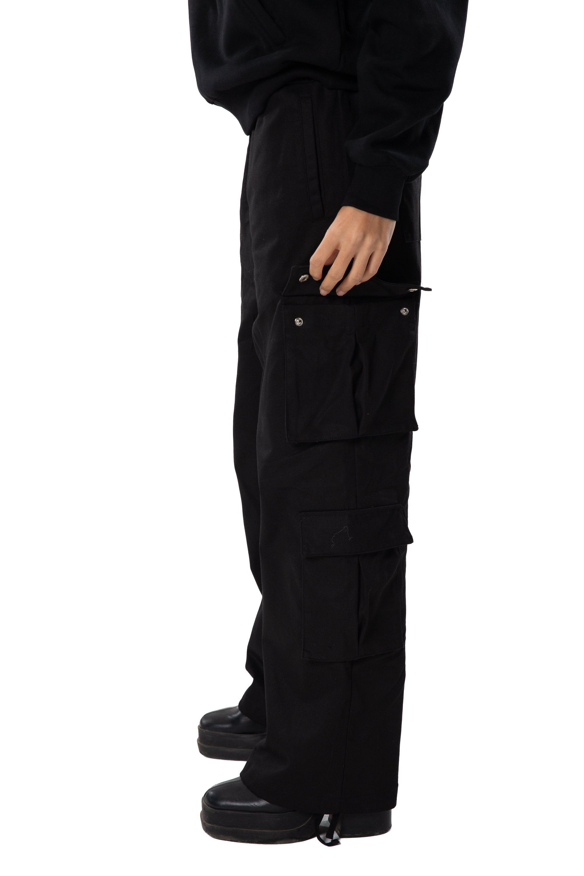 The Stargazing cargo silhouette is cut from breathable cotton, it offers an oversized fit complemented by 4 side pockets for a trendy finish. The extra-long hems are designed to pool on the floor, adding a distinctive flair to the ensemble.